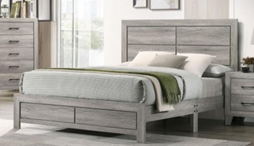 Upgrade your bedroom with the new Full Size Hopkins Bed. The sleek, modern design features a full size headboard, footboard, and rails in a stylish gray finish. Elevate your sleep experience with this contemporary and functional bed.