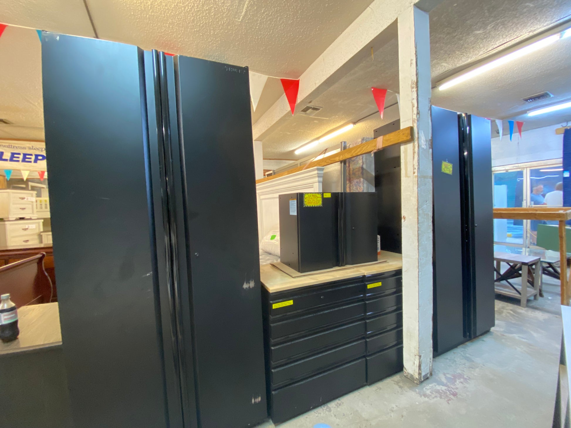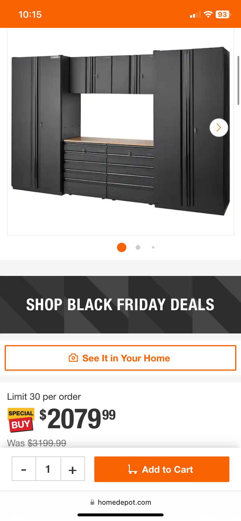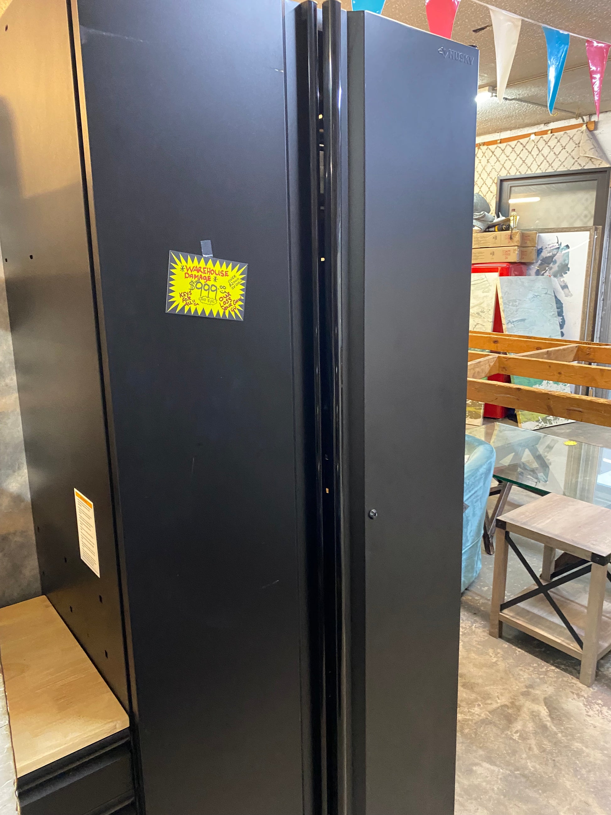 Organize your space with ease using the Huskey Storage System - a heavy duty welded steel solution for your garage in sleek black. The system includes two multi-use lockers, one wall cabinet, and two five-drawer base cabinets to securely store your tools and important items. This item is brand new, but was damaged during shipping, and it is missing an overhead cabinet, which is why we're offering it at a significant discount.