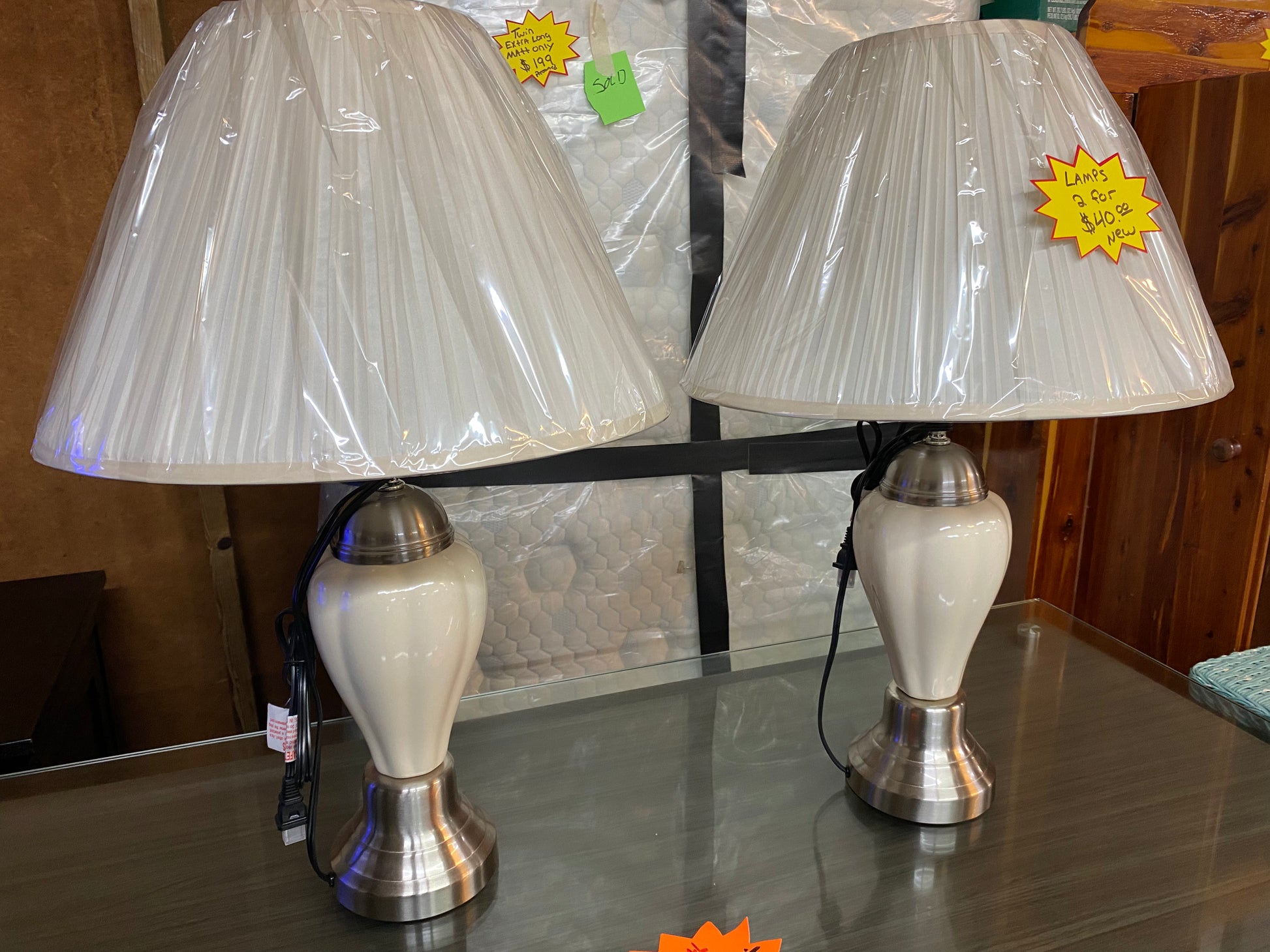 These beautiful ivory table lamps are brand new and ready to brighten up your space.