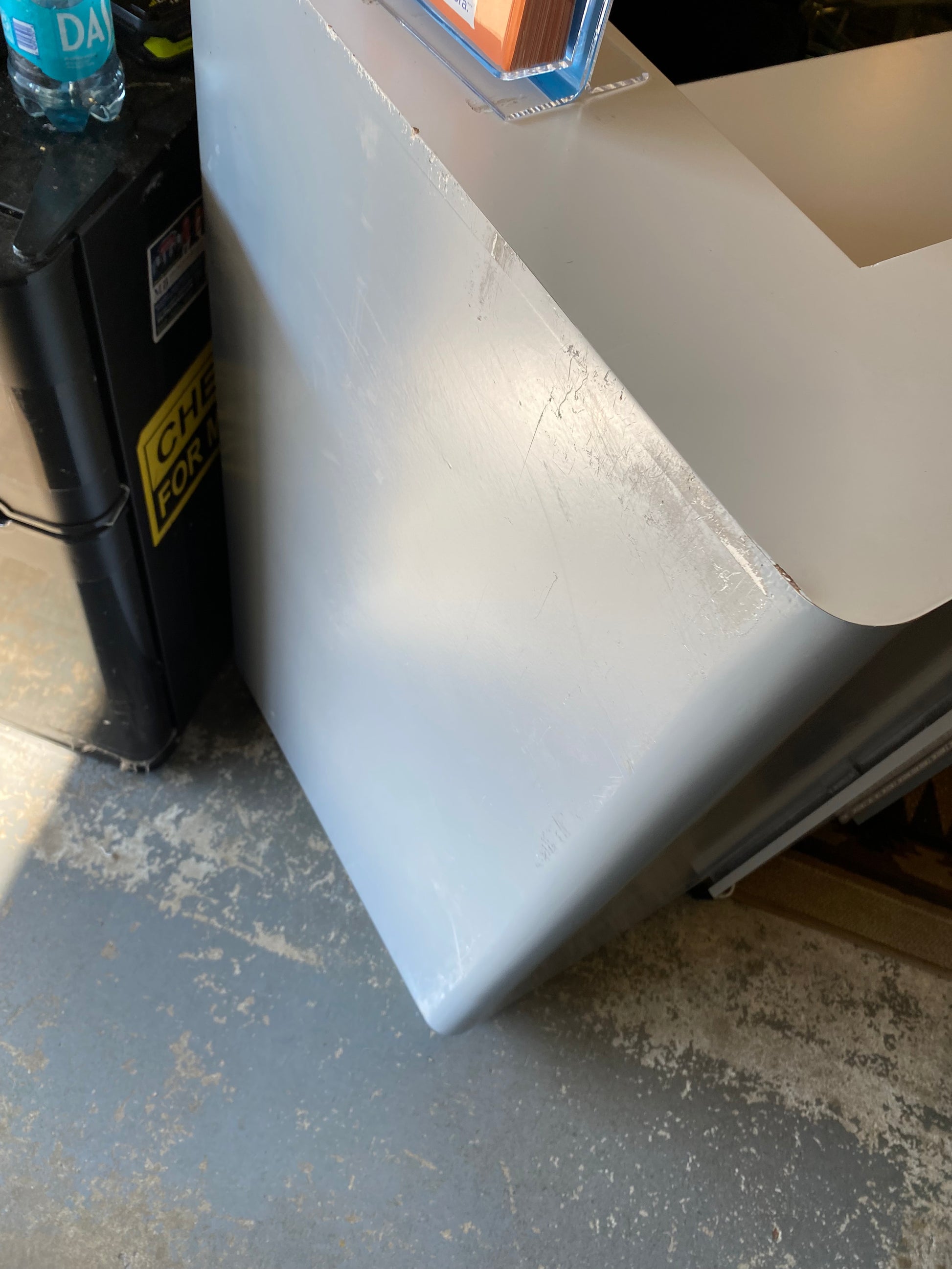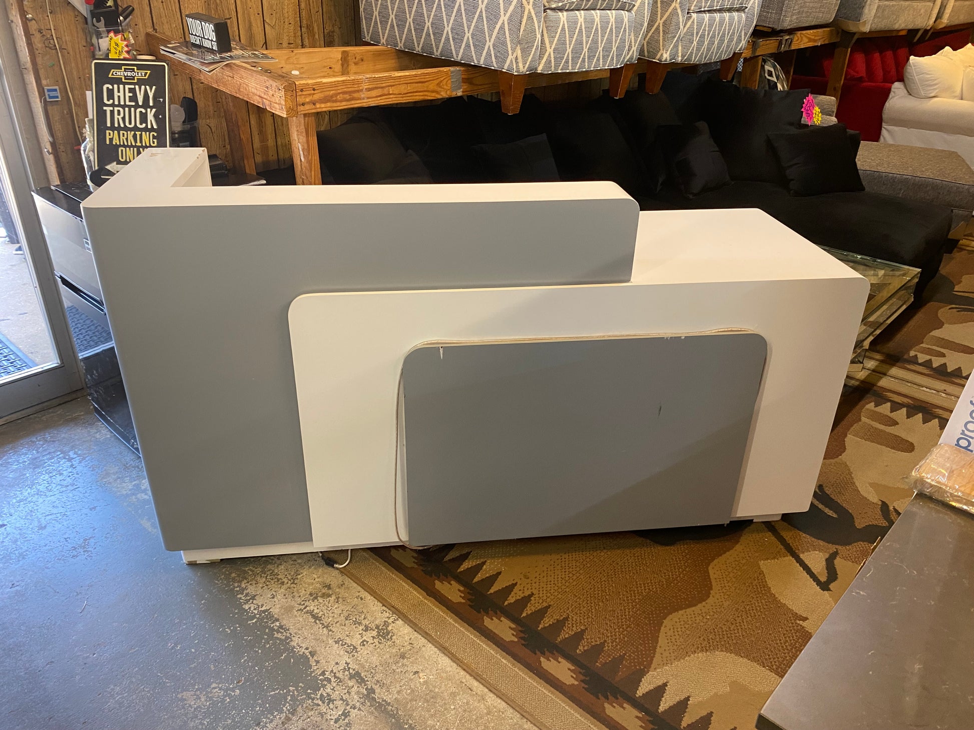 "Transform your reception area with our spacious and functional pre-owned receptionist desk. With ample storage in drawers and keys included, your receptionist will have everything they need at their fingertips. Measuring 71 inches long by 39 inches high by 23 inches depth, this desk is a steal at a discounted price!" We are selling this piece AS-IS.
