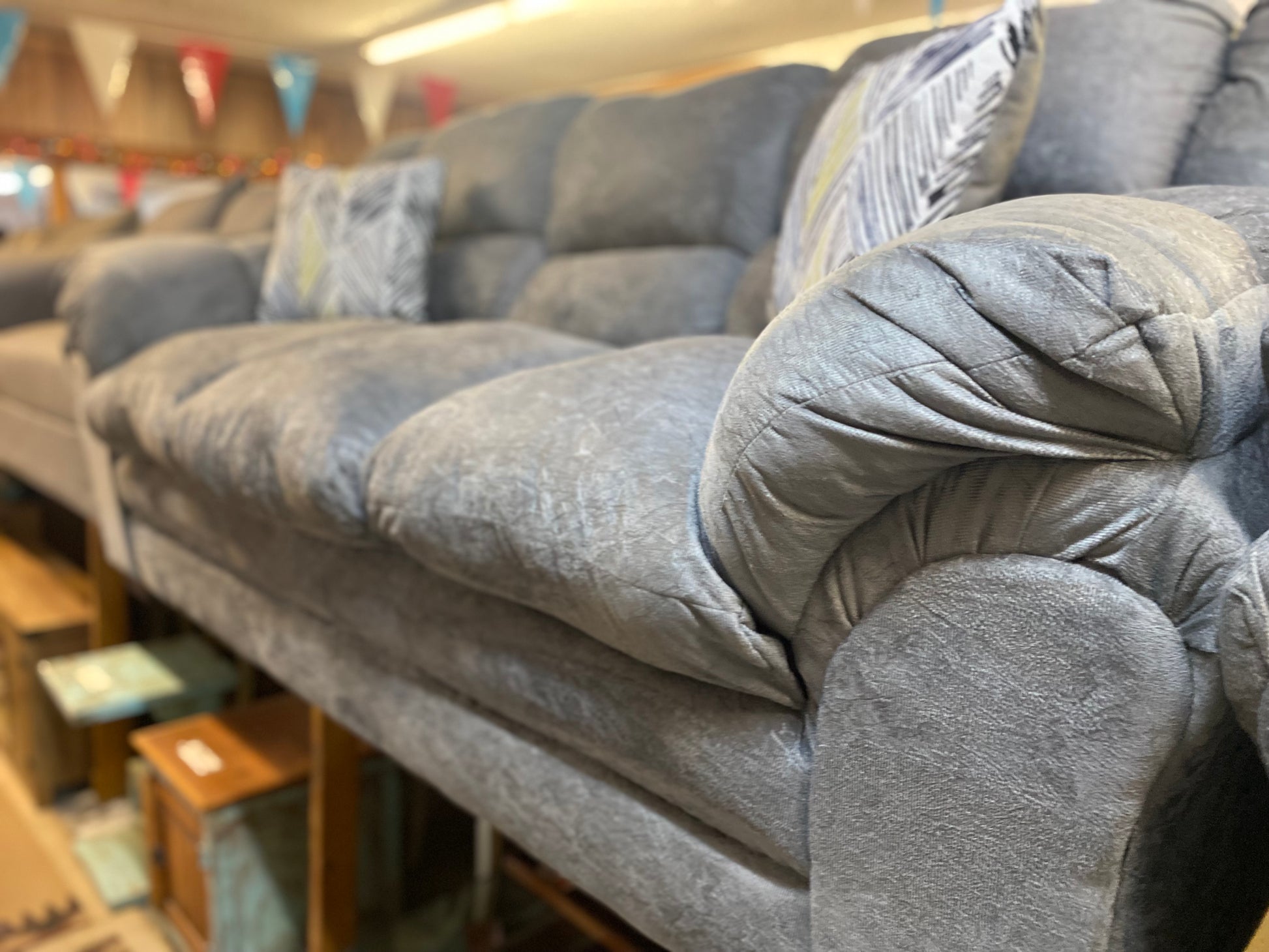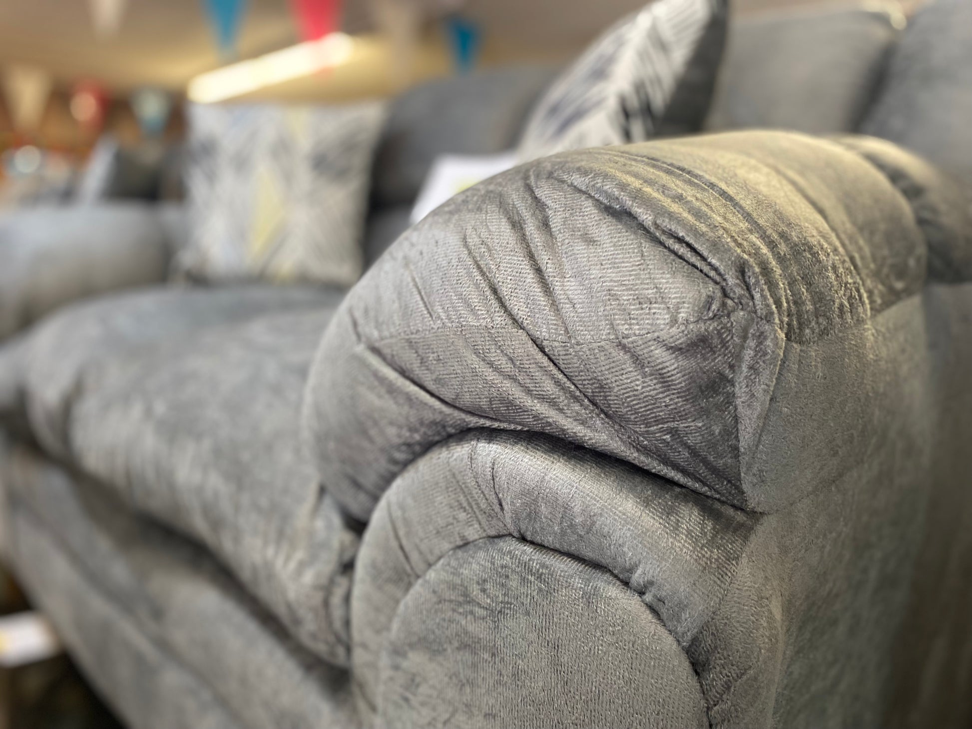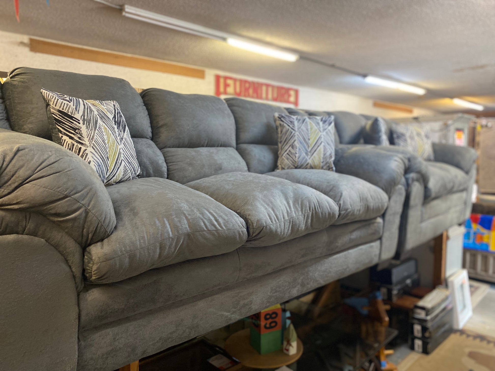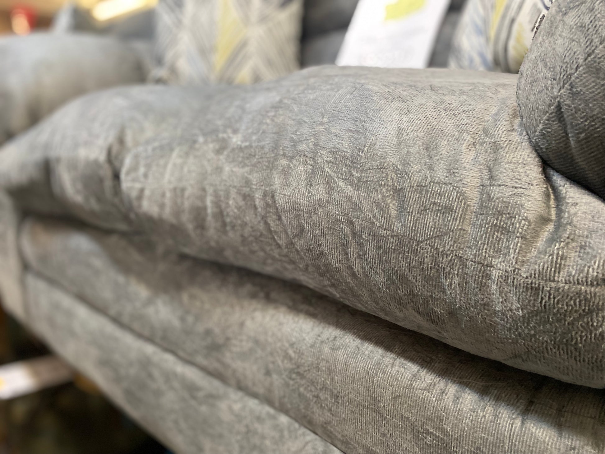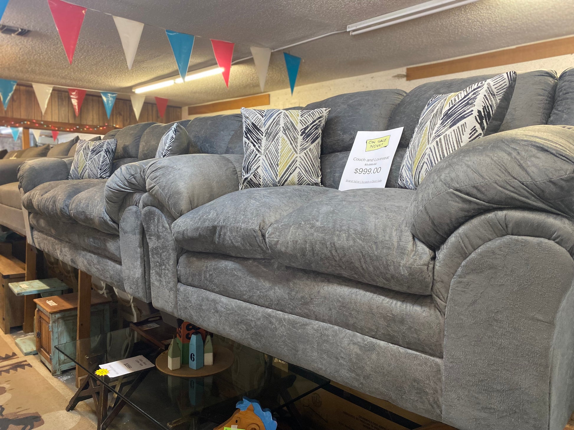 Introducing our latest addition, the Super Plush Living Room Suite! With its brand new couch and loveseat set, experience ultimate comfort and style. Complete with accent pillows and beautiful gray upholstery, it's the perfect addition to any living room. Upgrade to luxury now!